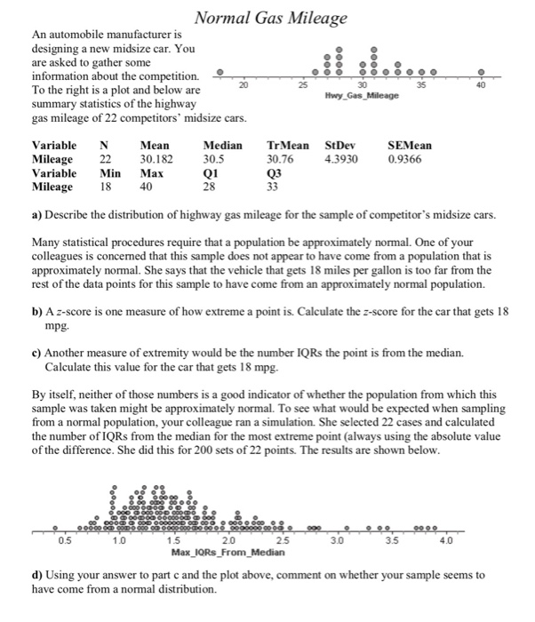 Solved Normal Gas Mileage An Automobile Manufacturer Is D