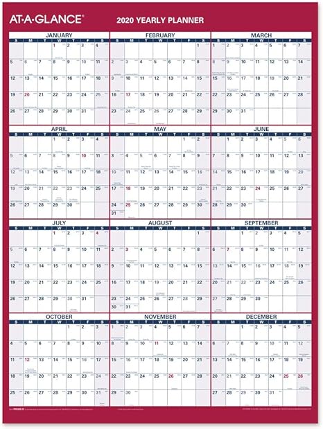 Year At A Glance Calendar 2020 Pretty And Free Printable